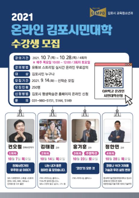 김포시는 코로나19 장기화에 따라 시민들에게 안전한 교육기회를 제공하기 위해 2021 온라인 김포 시민대학을 10월 7일부터 개강한다.