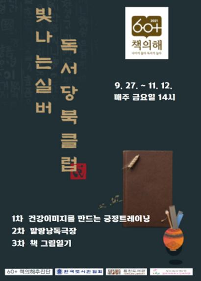 통진도서관에서는 사업명을「빛나는 실버-독서당 북클럽」으로 정하고 9월27일부터 1차 긍정트레이닝 프로그램(심진주 인지개발강사)을 진행하고 있으며, 9월24일부터 2차 연극배우(최정현)와 함께하는 말랑낭독극장, 10월22일 3차 그림책작가(장순녀)의 책 그림일기 프로그램을 진행한다.