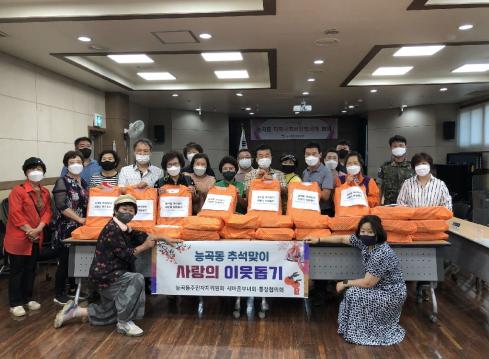 참석자들은 방역지침을 준수하며 관내 독거노인을 비롯한 취약계층 30세대에 불고기, 송편, 한과세트를 전달했다.