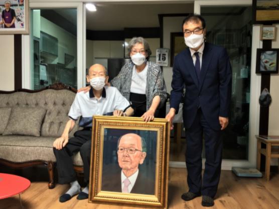 황지청장은 백운호 지사님께 지난 8월 서대문 형무소에서 열린 ‘생존 애국지사 초상화 특별전’에 전시했던 지사님의 초상화와, 전시회에 다녀간 시민들이 지사님께 쓴 ‘국민감사편지’를 대통령 위문품과 함께 전달했다.