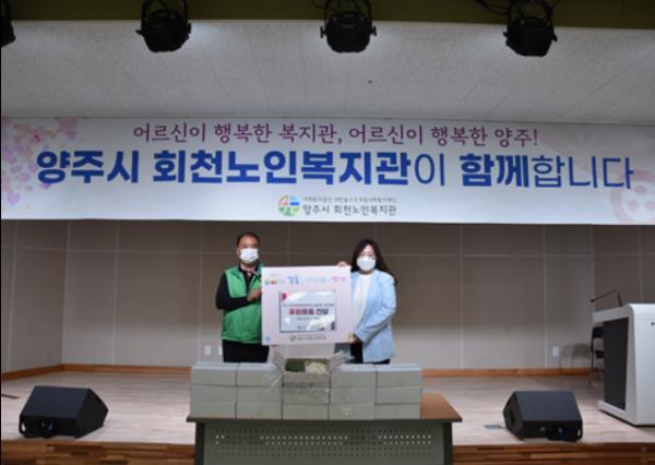 양주시 직장공장새마을운동양주시협의회는 9월17일 양주시 회천노인복지관에 어르신들을 위한 절편 60kg를 기증했다.