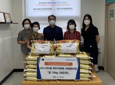파주시정신건강복지센터는 지난 15일 파주시약사회-여약사위원회가 정신질환 편견해소 및 지역사회 통합을 위한 물품을 후원했다고 밝혔다.
