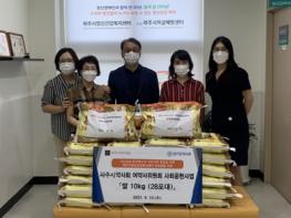 이날 전달된 후원물품은 100만원 상당의 쌀(10kg, 28포대)로 센터 등록 회원의 가정에 전달했다.