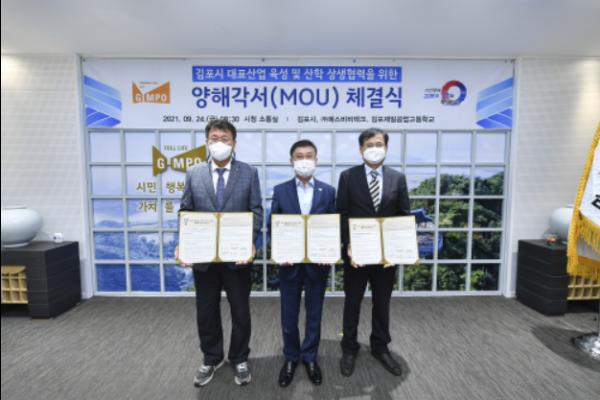 24일 김포시가 ㈜SBB테크, 김포제일공업고등학교와 ‘대표산업육성 및 산·학 상생협력’ 업무협약(MOU)을 체결했다.