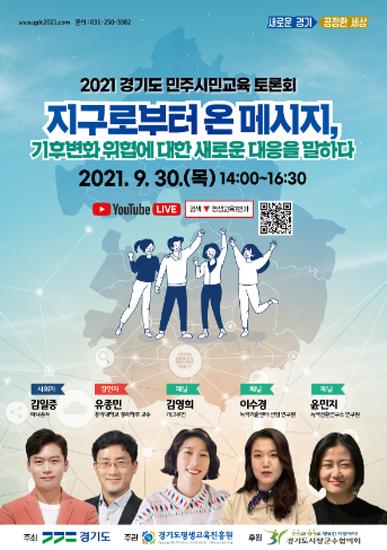 경기도평생교육진흥원이 30일 오후 2시 ‘지구로부터 온 메시지, 기후변화 위협에 대한 새로운 대응을 말하다’라는 주제 아래 ‘2021년 경기도 민주시민교육 토론회’를 온라인 비대면 방식으로 개최한다.