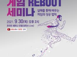 경기도는 ‘실패를 통해 배우는 게임의 성공법칙’이라는 주제로 게임 리부트(Reboot) 온라인 세미나를 오는 30일 오후 2시에 개최한다.