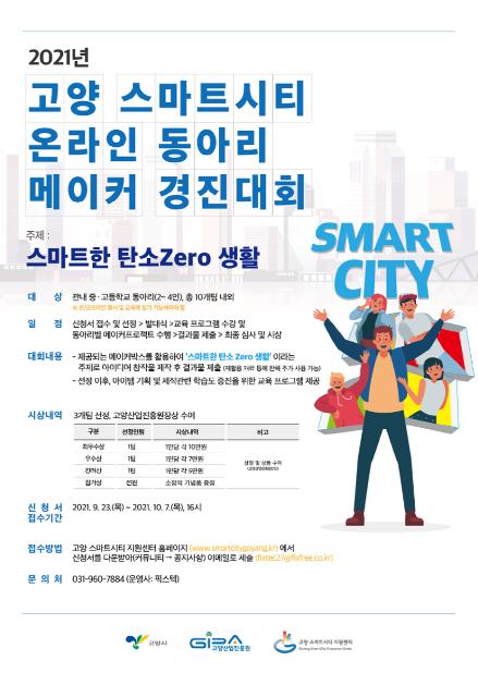 고양시와 고양산업진흥원은 고양시 중·고등학교 동아리 학생들을 대상으로 ‘스마트한 탄소 Zero 생활’이라는 주제로‘2021년 고양 스마트시티 온라인 동아리 메이커 경진대회’를 비대면으로 개최한다.