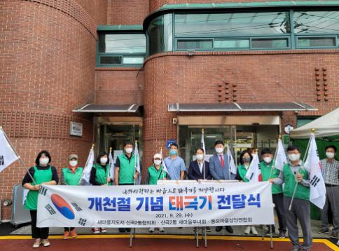의정부시 신곡2동은 10월을 맞아 9월 29일 새마을지도자 신곡2동협의회, 신곡2동 새마을부녀회, 동오마을상인연합회와 함께 태극기 전달식을 개최했다.