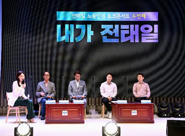 이수호 전태일재단 이사장, 김종구 경기도 노동국장 등 노동관련 인사들이 참석한 가운데 경기도청 북부청사 평화누리홀에서 열린 이번 토크 콘서트는 경기도가 주최하고 전태일재단이 주관했다.