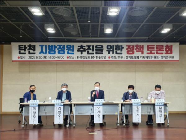경기도의회 기획재정위원회 이제영 의원(더불어민주당, 성남7)은 30일 성남 한국잡월드 한울강당에서 ‘탄천 지방정원 추진을 위한 정책 토론회’를 개최했다.