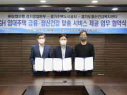 GH는 NH농협은행, 경기도정신건강복지센터와 ‘GH 임대주택 입주민의 금융 · 정신건강 맞춤 서비스 제공을 위한 업무협약’을 체결했다고 30일 밝혔다.