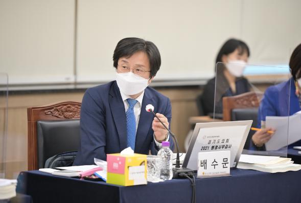 경기도의회 교육행정위원회 배수문 의원(더민주, 과천)은 5일 시흥교육지원청에서 열린 시흥·화성오산·부천·안산교육지원청에 대한 2021년 행정사무감사에서 조직개편으로 기구가 확대된 교육지원청에 대해 효율적인 인력 배치 및 관리 방안 마련을 지적했으며, 미래교육과정, 골프교육과 같은 특성화된 교육을 받고 있는 대상자와 미대상자 간 차별적인 인식이 발생하지 않도록 교육지원청에 관리 방안을 요구하였다.