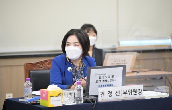경기도의회 교육행정위원회 권정선 부위원장(더불어민주당, 부천5)은 5일 시흥교육지원청에서 열린 시흥·화성오산·부천·안산교육지원청에 대한 2021년 행정사무감사에서 사립학교도서관에 대한 전문인력의 조속한 배치와 초등돌봄교실의 확대 운영을 촉구했다.