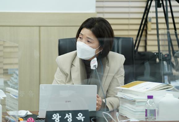왕성옥의원은 코로나 19라는 장기간 지속되는 의료재난 속에서 문정희 복지국장이하 전직원들의 노고를 격려하면서도 긴급복지에서 소외받는 복지사각지대를 없애달라고 당부하였다. 특히 경기도형 긴급복지사업에서 소득, 재산, 금융재산 기준 등 3가지 조건을 모두 충족해야하는 현 시스템에서는 극단적 선택을 하는 위기가정 발굴에 한계가 있다고 지적하며 대안마련을 촉구하였다.