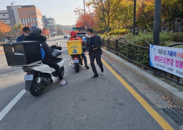 이번 단속으로 불법 등화장치 부착 등 자동차관리법 29조 위반 9건, 번호판 훼손 등 자동차관리법 10조 위반 3건, 소음기 개조 등 자동차관리법34조 위반 5건 총 17건을 적발했다.