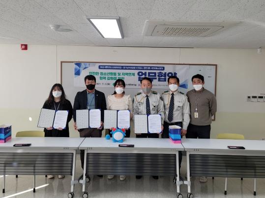 화성시여성가족청소년재단, 동탄청소년문화의집과 경기남부경찰청 누리캅스, 동탄3동 시민방범순찰대는 11월 6일, 안전한 청소년활동과 지역연계 협력 강화를 위한 업무협약(MOU)을 체결했다.