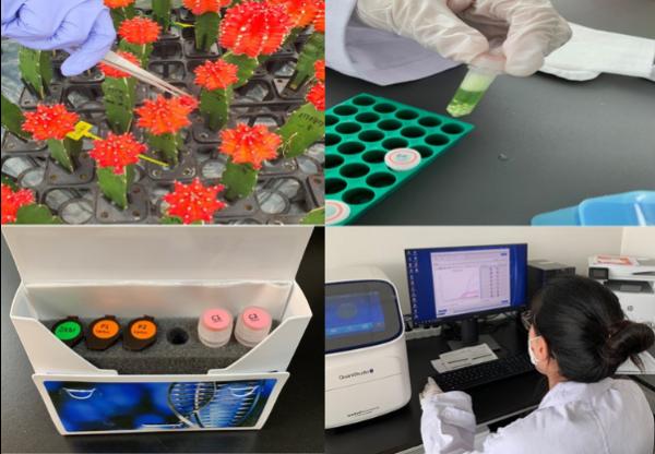 경기도농업기술원 선인장다육식물연구소가 접목선인장에 발생하는 바이러스 5종(CVX, OVX, ZVX, SCV, CMMoV)을 신속하고 정확하게 진단할 수 있는 분석 시스템을 구축했다.