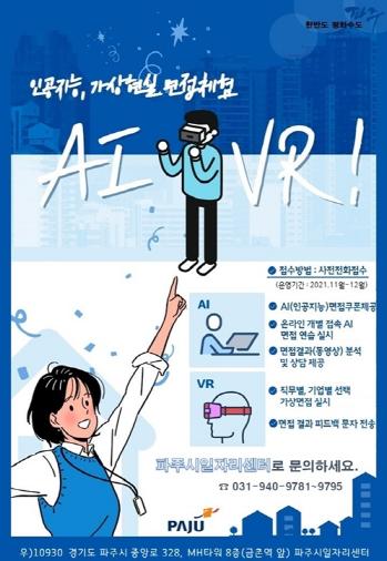 AI·VR 면접 체험은 11월~12월 두 달간 사전 예약을 통해 이용할 수 있으며, 기타 문의사항은 파주시 일자리경제과 또는 파주시일자리센터로 문의하면 된다.