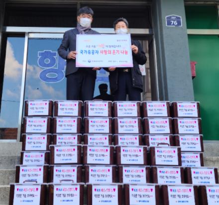 경기북부보훈지청(지청장 황후연)은 11월 11일 파주 거주 재가대상 40가구에 파주 재향군인회(회장 이희중)가 후원한 김장김치(200만원 상당, 가구당 10kg)를 전달하였다.