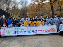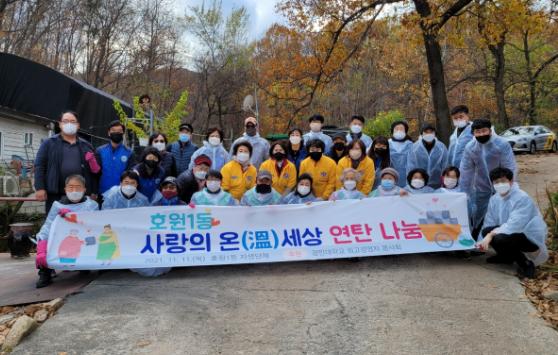 의정부시 호원1동 주민센터는 11월 11일 의정부시 다락원 일대의 소외계층 6가구에 겨울 난방용 연탄을 전달하는‘사랑의 온(溫)세상 연탄 나눔’ 봉사활동을 진행했다고 밝혔다.
