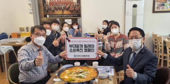 의정부시상권활성화재단 김광회 대표이사 및 임직원 일동이 제14회 의정부부대찌개 축제를 기념하여 부대찌개 참여업소를 방문해 부대찌개 릴레이 소비촉진 캠페인을 진행하였다.