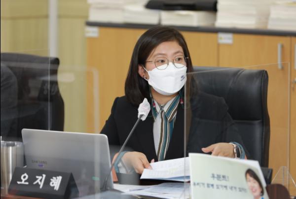 경기도의회 기획재정위원회 오지혜 의원(더불어민주당, 비례)은 12일 기획재정위원회 회의실에서 실시한 '2021년도 기획재정위원회 소관 종합 행정사무감사’에서 각 실·국 소관 조례 정비와 위원회 전반적인 관리의 필요성에 대해 언급했다.