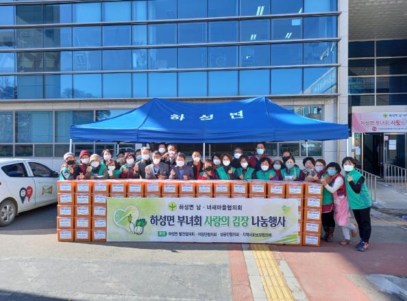 윤명순 하성면새마을부녀회장은 “본격적인 겨울을 앞두고 소외된 어르신 및 저소득 가정에 정성과 사랑으로 담근 김치를 전달할 수 있게 되어 보람을 느끼고, 앞으로도 지속적인 봉사활동을 통해 나눔을 실천하고 싶다”고 전했으며,