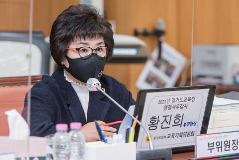 경기도의회 교육기획위원회 황진희 의원(더불어민주당, 부천3)은 11월 15일 경기도의회 제356회 정례회 중 경기도교육청 남부청사에서 진행된 경기도교육청에 대한 총괄 행정사무감사에서 도교육청과 교육지원청이 일선 학교에 실질적인 지원을 해야 한다고 지적했다.