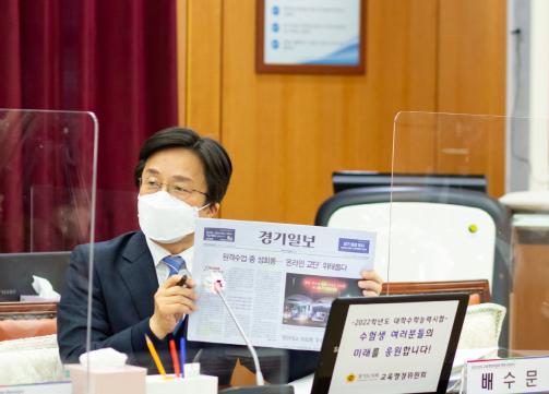 경기도의회 교육행정위원회 배수문 의원(더민주, 과천)은 16일 경기도교육청 남부청사에서 열린 2021년 행정사무감사에서 최근 발생한 원격수업 도중 학생에 의한 성희롱 사건을 언급하며, “최근 들어 교권침해의 유형이 다양해지고 있을 뿐만 아니라 작년부터 이어지고 있는 비대면 수업 장기화로 인해 ‘사이버 교권침해’가 새롭게 등장했다”고 강조했다.