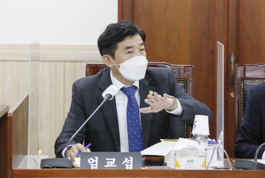 경기도의회 건설교통위원회 엄교섭(더불어민주당, 용인2)의원은 16일 경기도 건설본부에 대한 2021년 행정사무감사에서 지방도․지방하천의 보상비 재원 확보와 협약 체결을 위한 적법한 절차 이행에 대해 집중적으로 질의했다.