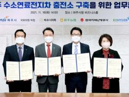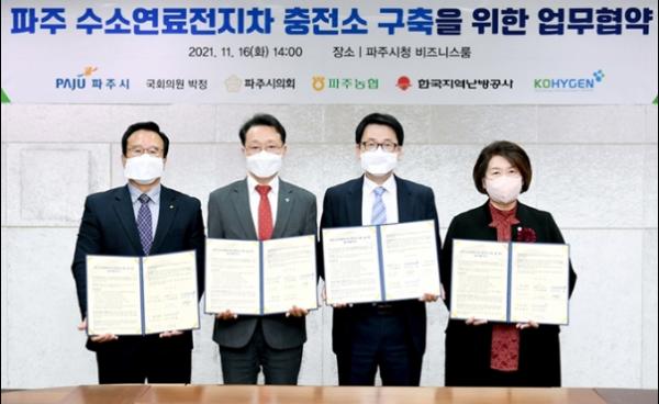 파주시, 박정 국회의원, 파주시 의회, 파주농협, 코하이젠(주)은 지난 16일 ‘파주형 수소연료전지차 충전소 구축’ 사업 추진을 위한 업무협약을 체결했다.