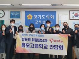 경기도의회 교육기획위원회 정윤경 위원장(더민주, 군포1)은 경기도의회 군포상담소에서 용호고등학교 학부모회장 및 임원진과 운영위원장, 교감 등 관계자들과 용호고등학교 환경개선사업 예산 관련 정담회를 가졌다.