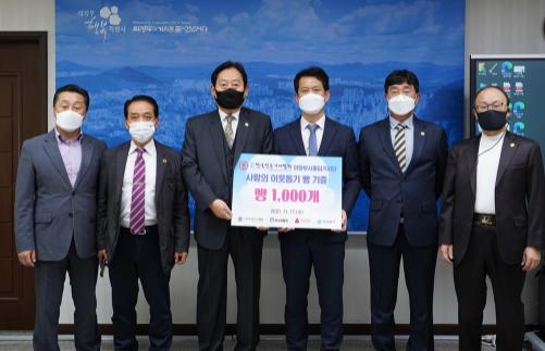 이날 부시장실에서 개최된 전달식은 이호갑 회장과 9명의 회원들은 회원들과 마음을 모아 우리사회의 어려운 이웃들에게 전달해 달라며 빵 1,000개를 기탁했다.