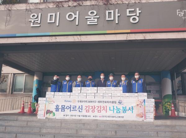 부천시원미노인복지관 맞춤돌봄팀은 새부천로타리클럽 후원으로 지난 11월 15일 홀몸어르신 김장나눔을 위한 김장김치 100박스(500kg) 전달식을 진행하였다.