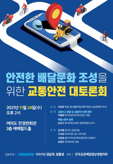 더불어민주당 김남국 의원과 임종성 의원이 공동주최하고 전국공공배달앱상생협의회가 주관하는 이번 토론회는 배달시장 확대에 따른 이륜차 교통사고 증가 현황과 배달 노동자들의 근로 환경을 살펴보기 위해 마련됐다.