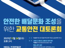 이상호 한국폴리텍2대학 학장이 좌장으로 나서며 이홍원 한국산업안전보건공단 과장이 '교통사고 현황 및 교통안전 정책 제안', 남우근 한국비정규센터 정책위원이 '배달노동자 실태'를 주제로 각각 발제를 맡는다.