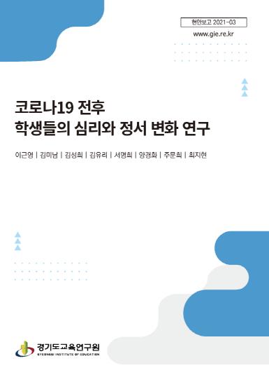 경기도교육연구원은 전국교육정책연구소네트워크 공동연구과제로 추진한「코로나19 전후 학생들의 심리와 정서 변화 연구」보고서(연구책임 이근영 연구위원)를 발간하였다. 이 보고서는 서울, 경기, 인천, 광주, 충남, 전북 지역의 초·중·고 학생(초2~고2) 27,976명의 코로나19 이후 심리정서 변화 실태를 담고 있다.