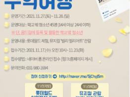 11월부터 단계적 일상회복이 시행되어 학교 밖 청소년의 문화 활동 욕구 해소와 일상생활의 활기를 불어 넣기 위해 준비되었으며 ▲ 놀이기구 체험 ▲ 퍼레이드 관람 ▲ 모둠별 미션수행 활동 ▲ 뮤지컬관람 등으로 운영할 예정이다.