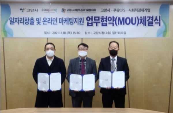 고양시가 지난 18일 쿠팡풀필먼트서비스(CFS), 사회적경제기업협의회와 업무협약을 체결했다.
