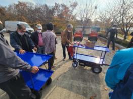 보급된 안전장비와 보조구는 자동 릴 분무기 8대, 농용동력운반차 9대, 작업대 9대, 연막소독기 1대, 농기구 정리대 11종으로 영농단계별 필요한 품목들로 구성됐다.