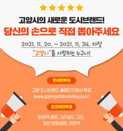 오프라인 투표는 화정역, 스타필드 고양, 일산 문화공원과 대화역에서 진행된다. 온라인 투표는 고양시 도시브랜드홈페이지에서 할 수 있다.