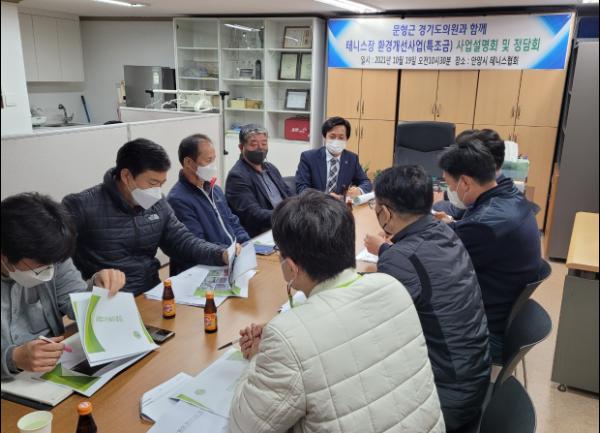 경기도의회 문화체육관광위원회 문형근 의원(더민주, 안양3)이 19일 안양시 테니스협회에서 운동장·테니스장 조명등 및 환경개선사업에 대해 논의하는 시간을 가졌다고 밝혔다.