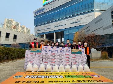 파주시 운정2동은 국제라이온스협회 354-H지구 3지역 4지대(지대 위원장 신영균)가 지역 내 어려운 이웃들의 겨울맞이를 위한 나눔 실천으로 쌀 100kg, 라면 100상자를 기탁했다고 19일 밝혔다.