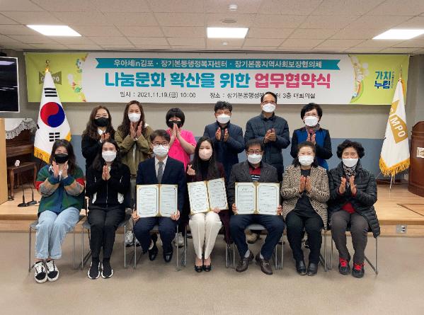 장기본동행정복지센터는 지난 19일 우아세in김포(우리가 만드는 아름다운 세상)와 장기본동지역사회보장협의체와 함께 나눔문화 확산을 위한 업무협약을 체결했다고 밝혔다.
