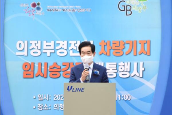 안병용 의정부시장은 “경전철 시행사 및 운영사의 노고에 감사드리며 앞으로 차량기지 임시역사가 고산지구 경전철 역사의 시금석이 되어 지역주민들이 안전하고 편리하게 이용할 수 있는 경전철 운영이 될 수 있도록 많은 노력을 기울여 달라”고 당부했다.
