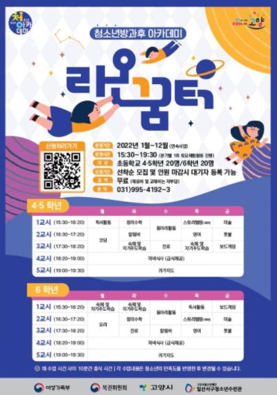 고양시청소년재단 산하기관인 일산서구청소년수련관 청소년방과후아카데미 라온꿈터에서 2022년 참가 신규 청소년을 모집한다.