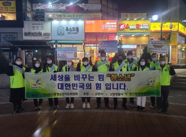 고양시 덕양구 원신동행정복지센터는 수능 및 연말연시를 대비해 청소년지도협의회(협의회장 이은우)가 지난 18일, 청소년 보호를 위한 거리 캠페인과 청소년 선도 활동을 실시했다.