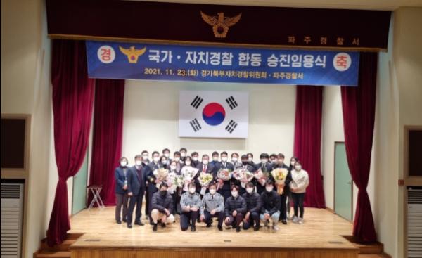 경기도북부자치경찰위원회는 23일 파주경찰서와 함께 ‘경기북부 경찰공무원 합동 승진임용식’을 개최했다.