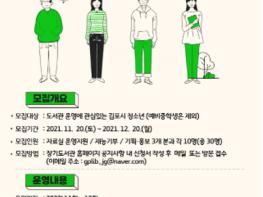 김포시립도서관 장기도서관은 2022년 제4기 청소년운영위원회 위원으로 활동할 청소년을 2021년 11월 20일부터 2021년 12월 20일까지 모집한다.