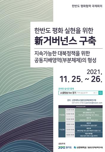 경기도와 신한대 탈분단경계문화연구원은 ‘한반도 평화실현을 위한 신(新) 거버넌스 구축-지속가능한 대북정책을 위한 공동지배영역(부분체제)의 형성-’을 주제로 오는 25~26일 한반도 평화 협력 국제회의를 개최한다.